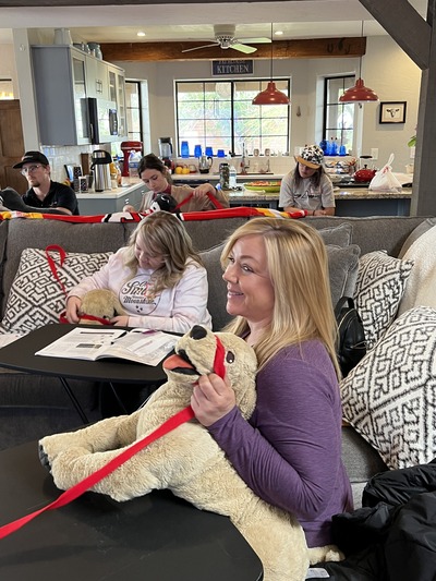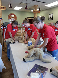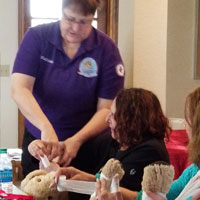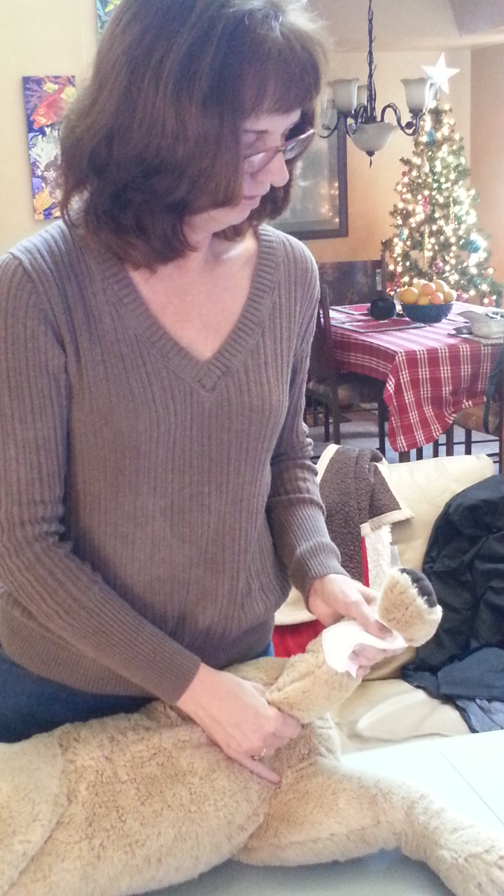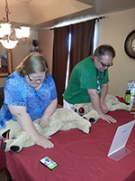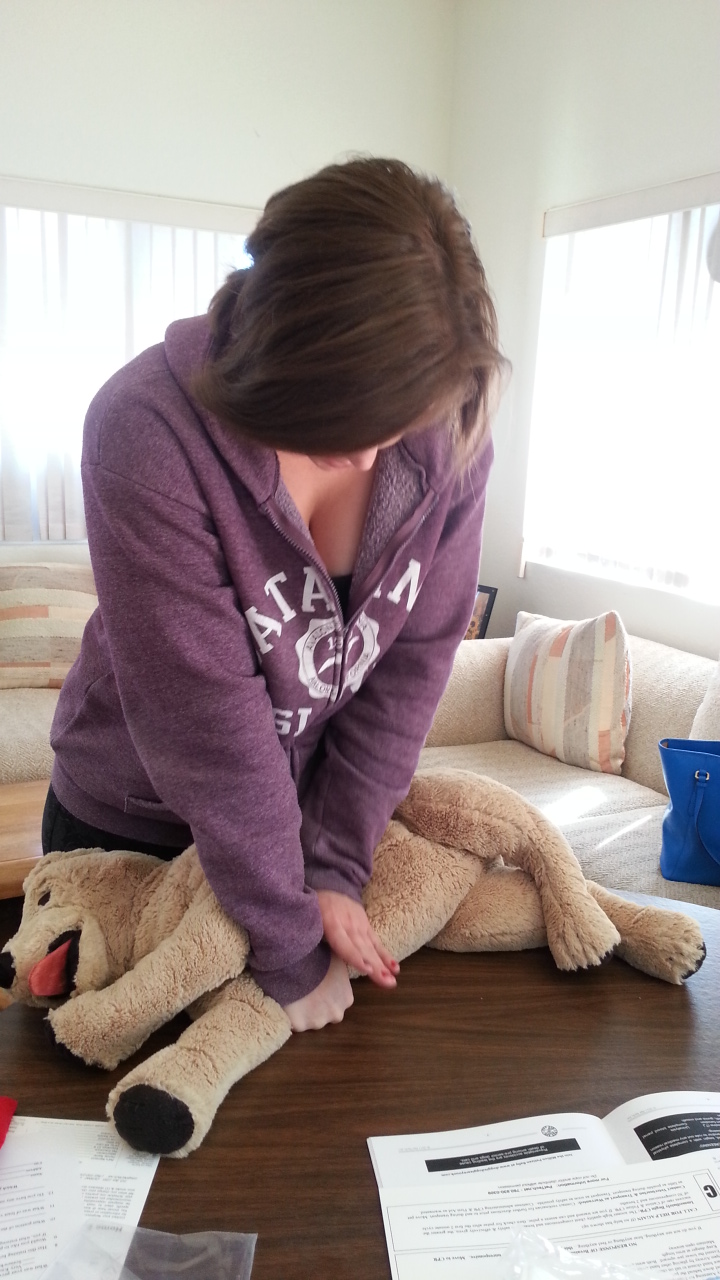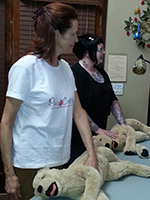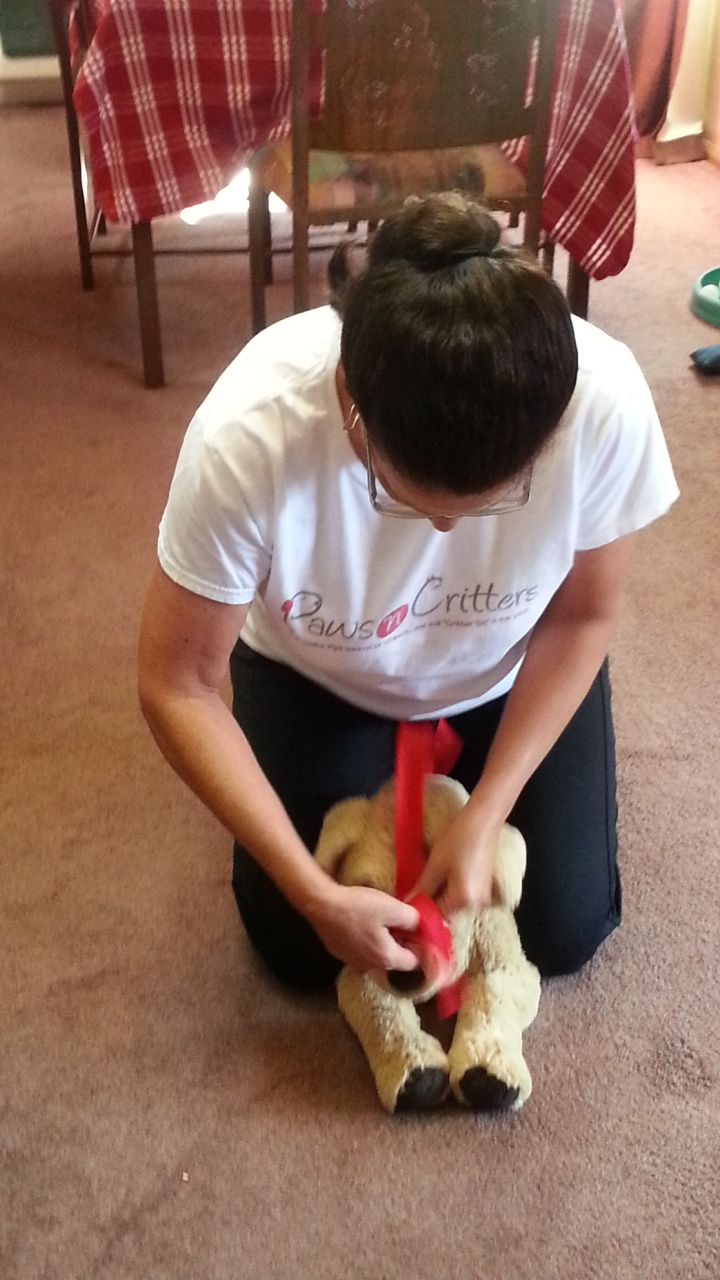 PetSaver Classes - January 2015 - Heidi learning how to Muzzle, Nancy learning bleeding protocols and how to bandage, Katie and Katy learning CPR and Rita learning Rescue Breathing.