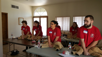 Learning hands-on CPR Techniques, muzzling techniques, bleeding protocols and more.